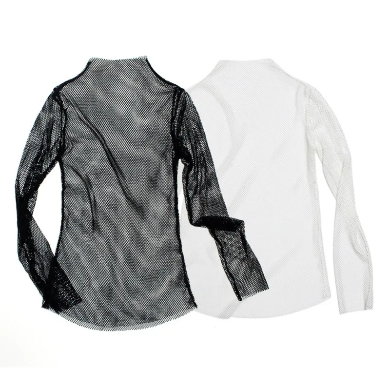 0 Response to "Offer Sexy voir à travers haut cou hauts pour les femmes poisson-Net Slim T-Shirt à manches longues boîte"